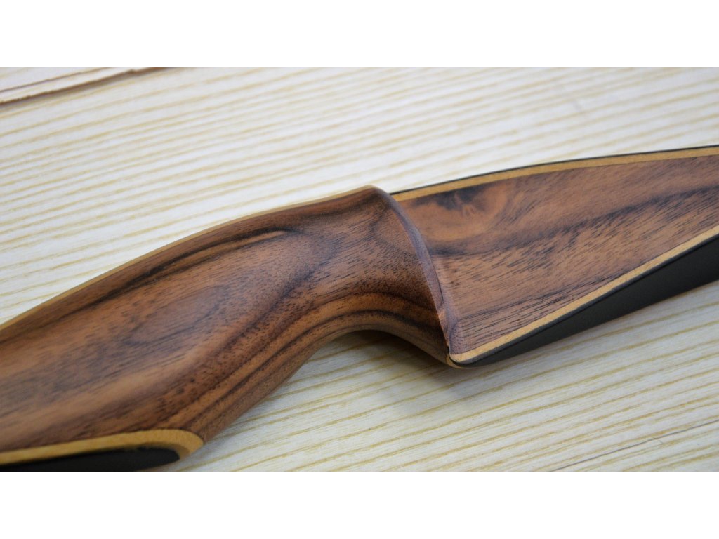 Střed z bubingy s pohodlným pistolovým úchopem, doplňují ramena ze ztapertovaného (zužovaného) bambusu pod černým sklolaminátem.