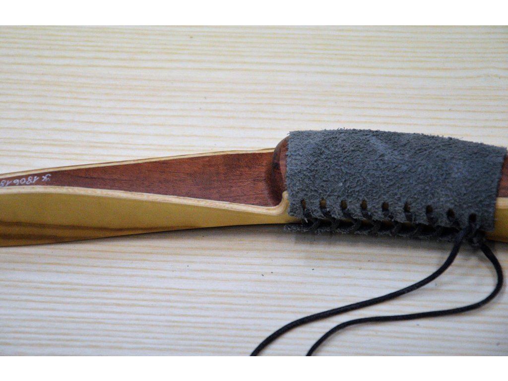 Jezdecký sendvičový luk, s bubingovým středem. Ramena luku jsou z jasanu a s vrchní designovou dýhou z olivy pod sklolaminátem. Střed luku je v místě úchopu potažen odnímatelnou černou kůží.